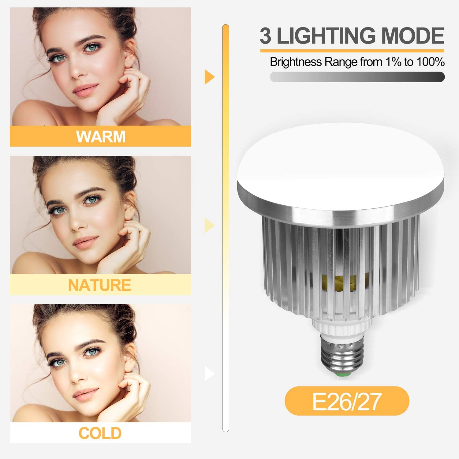 【E26/27 Standard Base】E26/27 standard screw base can be used everywhere, suitable for soft light box, photography umbrella and most of the photographic lighting socket, easy to replace. Note: Please do not touch the bulb immediately after the power is turned off.